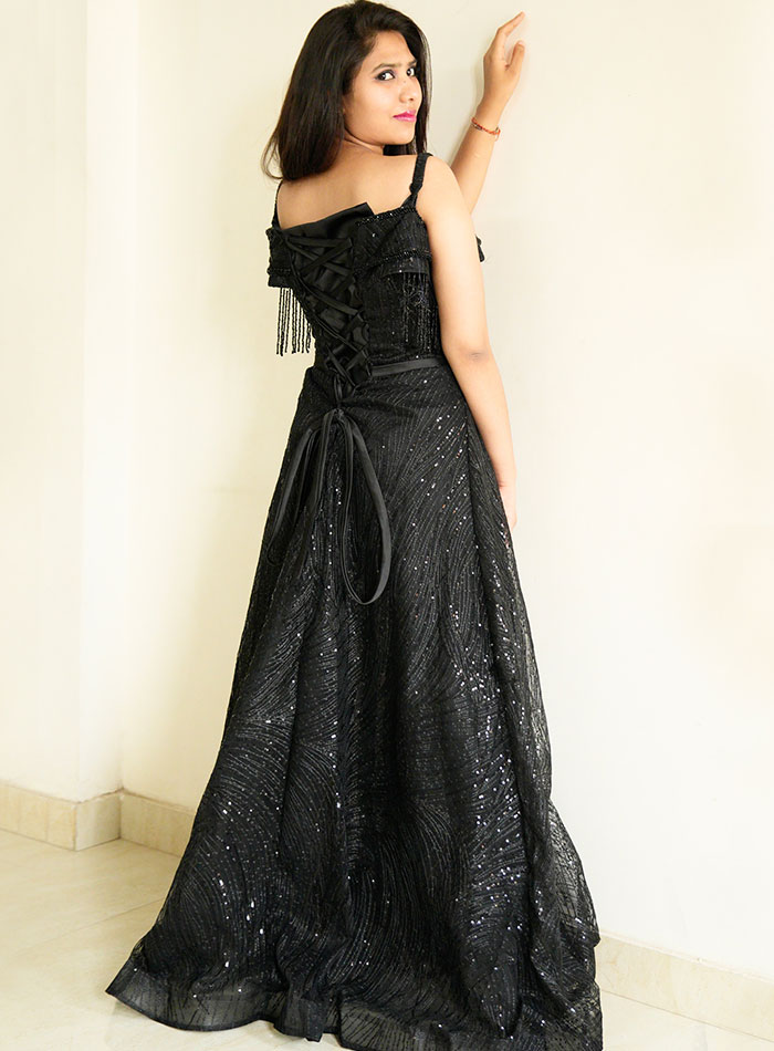 Glimmering ball gown prom dress has unique confetti beading on dazzling glitter tulle for the extra pop of sparkle with a bustier style bodice featuring satin corset trim and dainty tie straps.We are committed to satisfy our customer and hence you can come to us any time for all of your queries