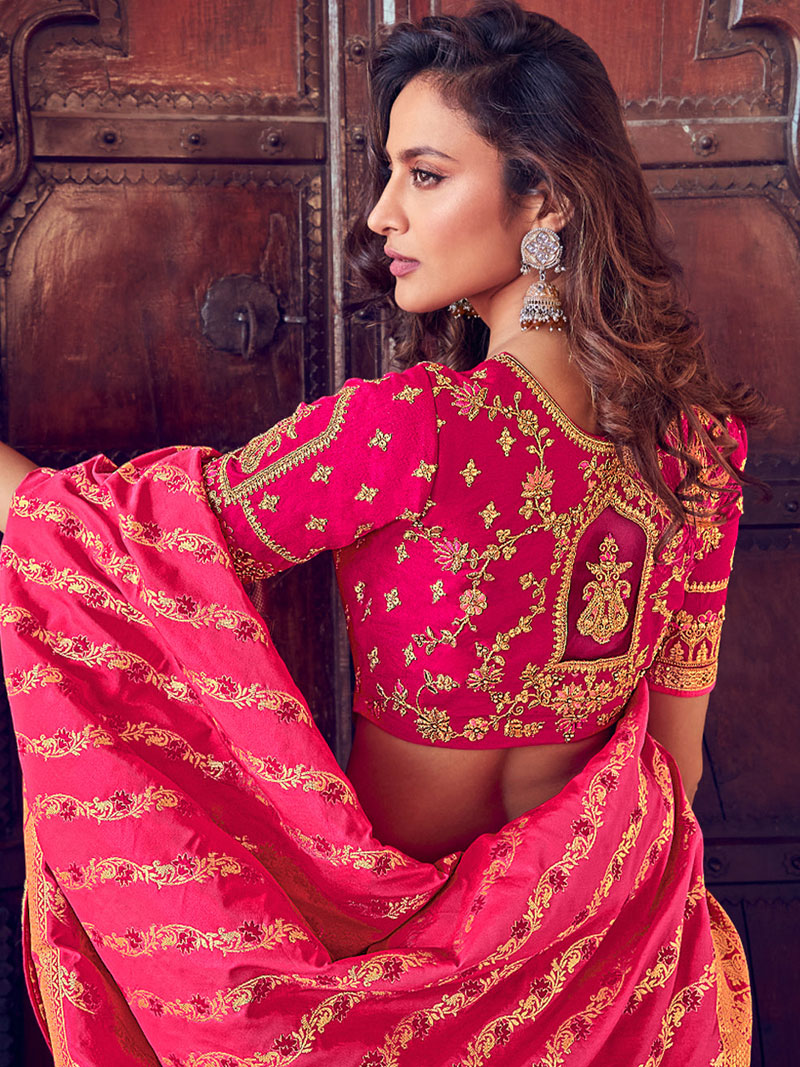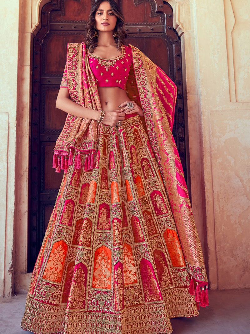 An alluring semi stitched lehenga in exquisite silk and enhanced with the timeless beauty of hand embroidered Heavy bridal Lehenga with detailed embellishment embroidery all over is just a next level royalty, the queen like design all over is something immense. The royal feel this lehenga set give is unmatchable. We know you want to look like a queen on your big day, so this piece will surely help you out! A treasure to inherit forever! Blouse Piece Length: 0.8 meters Lehenga : Circular (Gherao) 3 meter. Dupatta: Banaras Fabric with Heavy Embroidery (2.5 meter. Length) |