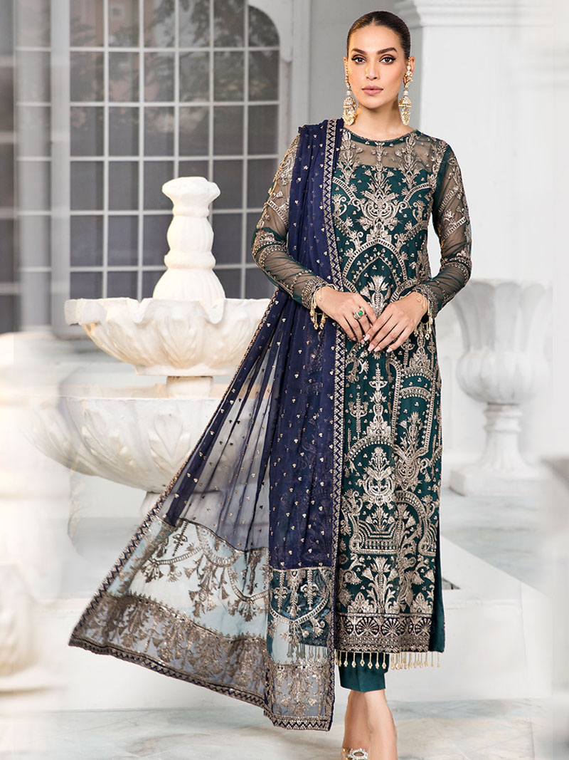 TOP – PURE GEORGETTE WITH FULL HEAVY EMBROIDERY WORK & SEQUINS WORK WITH DIAMOND STONE WORK & DAAMAN ORGANZA EMBROIDERED WORK WITH LACE INNER – SANTOON BOTTOM – SANTOON DUPATTA – PURE CHIFFON FULL HEAVY EMBROIDERY WORK & ORGANZA HEAVY EMBROIDERY WORK DUAL COLOR ATTACHED Occasion: Wedding, Festive & Party Wear Type : Semi-Stitched Free Size (The dress material is unstitched, as per your size you can stitch the dress.) |