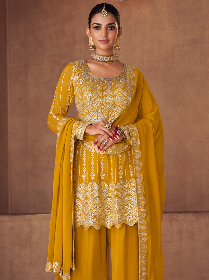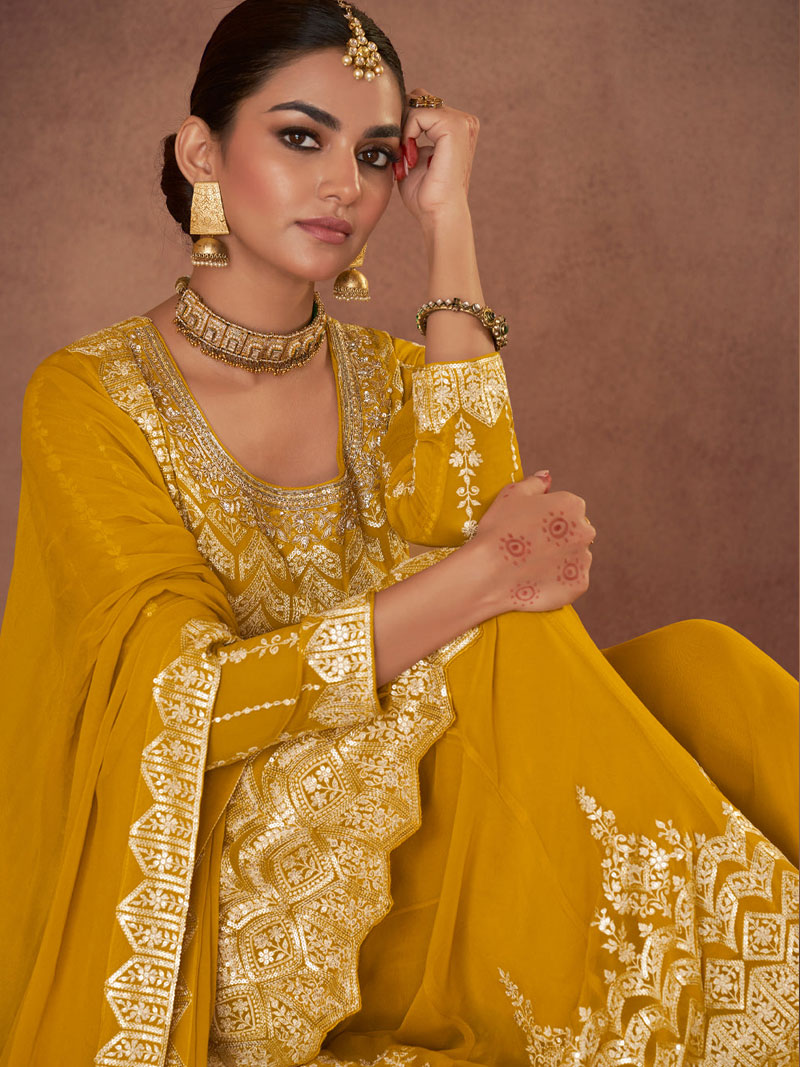 | Give your traditional look a trendy touch with this gorgeous designer embroidered Anarkali gown semi-stitched from Zari Banaras. Comprising the stunning color and design, this set in Georgette made which makes it the perfect outfit for every season. Wear yours with a pair of super-sized earrings and high heels to look, queen! |